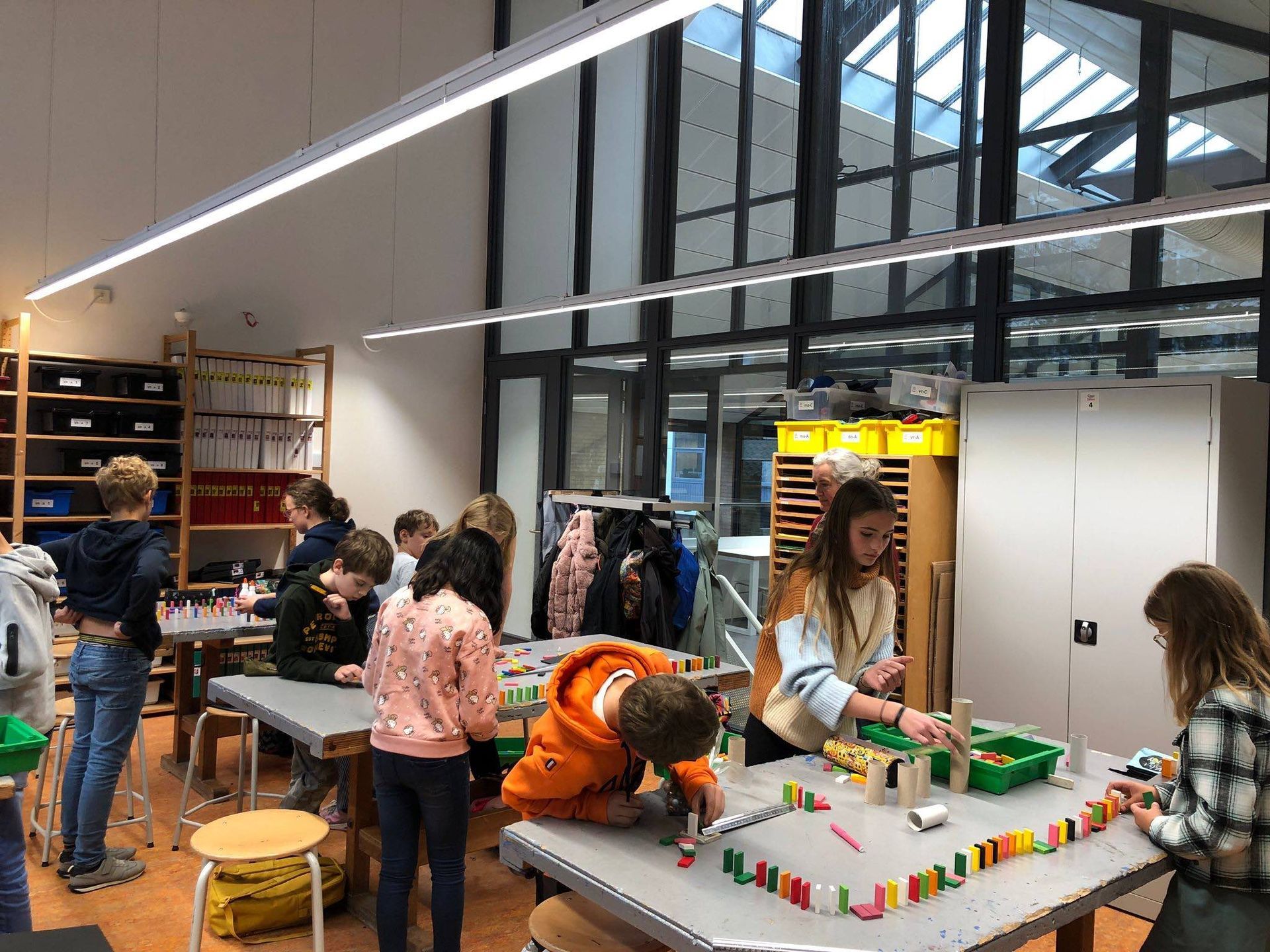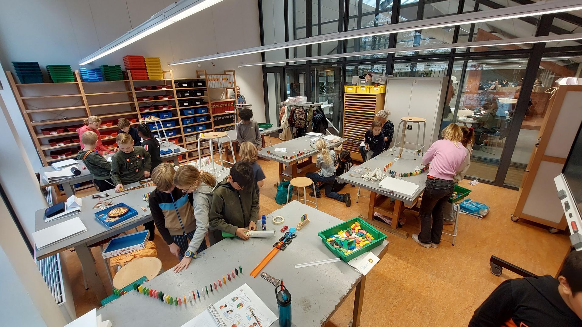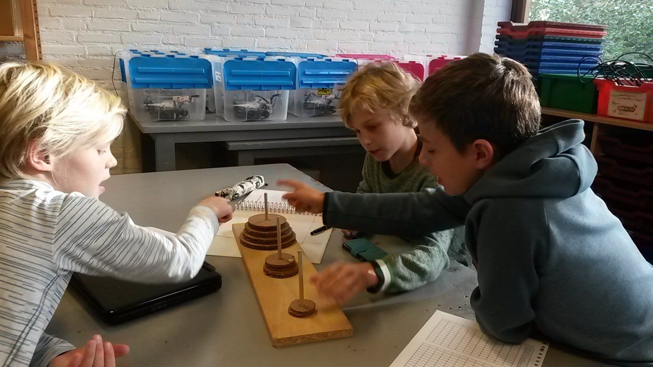 Er wordt in kleine groepjes aan de opdrachten gewerkt. Soms is rivaliteit tussen de groepjes inherent aan de opdracht (“welke brug is de sterkste?”). Maar het gaat natuurlijk vooral om het denk- en leerproces. Om de samenwerking in een groepje. En om hoe groepjes van elkáár kunnen leren.
